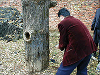 ■そこで呉所長らは持参したギムネでイチョウの木に穴をあけ始めた。かなり