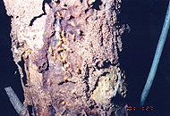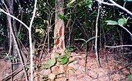 立ち木にはシロアリの泥線が