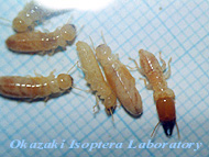 ニトベシロアリPericapritermes nitobeiは左大顎がとくに大きく捻じ曲がり、外部の刺激に対してこれを