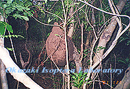 森の中でイエシロアリを見ることは割合少なく、多くは人間の生活域に住んでいます。バス停やちょっとした杭、家屋の周りの大木などにイエシロ