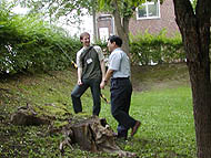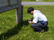 予想はしていたものの、さずかにシロアリの「シ」の字も見つからなかった。 稚内から十数キロ南下する地点までは、山にほとんど木がなく、一面熊笹で覆われている。木は人の背丈程度の細いものがかろうじて立っているだけだ。 もちろん、公園など人の手の入ったところではある程度林があるが、いくら探ってもアリやワラジムシしか出てこない。 ある民家の倉庫の土台に緑色の薬剤が塗ってあるのを見つけ、ずうずうしく見せてもらった。家人によると、ナミダタケ対策だという。虫に食われるということはないかと聞いても虫はいないという。 この一体ではたぶん雪もそれほど深く積もらず、温度を維持できる場所がないのだろう。冬場の風は猛烈であるらしく、道路に沿って片側に雪除けの柵があるし、稚内には風力発電施設が大規模に建設されていた。 ある程度南下して森のある公園などをさばいてみたが、やはりアリしかいない。8月近いというのにアジサイが咲いている。もしもシロアリがいたとしても、活動期間が極めて少ない。 札幌では市内の公園や北海道大学構内などでヤマトシロアリを採取することができたが、やはり北海道の北部は札幌あたりとは大きく異なるようだ。 国際社会性昆虫学会議の会場で、名寄のシロアリを見つけた吉村先生は、鉄道の枕木を介して名寄まで生息を広げたのではないかとおっしゃっていた。 今度探しに行くときは、鉄道沿いに行くべきか。 しかし、北海道は遠く、お金もかかる。同じ金額でシロアリの豊富な雲南省までいけそうだ。 2000/8