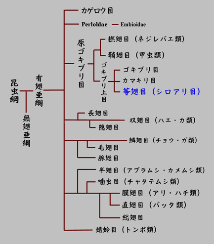 昆虫の系統図とシロアリの位置