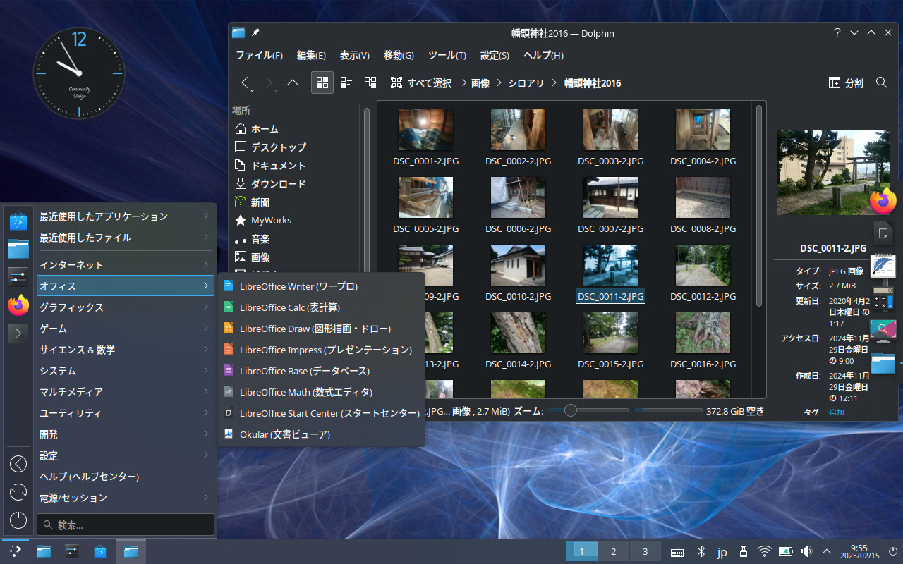 Linuxの種類はUbuntu Linuxをベースに操作画面(デスクトップ環境)にKDE-Plasmaを採用したKubuntu。写真は壁紙やカラーテーマをカスタマイズしたものです。