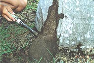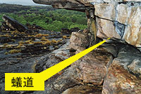 場所には、多くの場合アリが居候していて、へたに塚をいじるとこれらのアリが噛み付いてくる。もちろんアリとシロアリは平和共存では