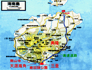 ![]() 海南島はフィリピン北部と同緯度で、 冬でも30℃以上の気温である。 現在「東洋のハワイ」として売り出し中。 |