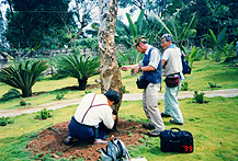 あろう。 ・・とりあえずホテルのロビー横の喫茶コーナーに行き、そこで事の次第を李 さん に納得してもらうことにした。 ・・すなわち、私たちにとって平先生はいわば同志であり常に行動を共にする こ と、したがって平先生の部屋をこのホテルに確保すること、そしてフリーツアーの”フリー”の部分を利用してシロアリの調査を行うこと、ゴ ルフや夜の歓楽街 とは無縁であることを李さんに何度も話した。 ・・李さんとしては当初「こんなリゾート地に来たのだからシロアリ調査とい うよ うな”仕事”のことばかり考えるのでなく、すこしぐらいは”骨休め”とか”楽しむ”ということも必要ではないでしょうか。」とさかんにい うのである。日本 人の観光客への固定概念が頭から離れないのだ。 ・・私たちはシロアリ調査は「仕事」ではなく、私たちにとっては「レ ジャー」で あり、楽しいことであるだけでなく、この一行が「シロアリが好きだ」という一点で結ばれたものだということを何度も繰り返し説明した。そ して深夜になって やっと理解が得られ、翌日からの行動予定が決まったのである。 |