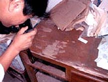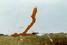 ![]() イエシロアリと タイワンシロアリの同時被害 ![]() ダイコクシロアリによる机の被害 ![]() 建物に侵入する タイワンシロアリの泥線 ![]() タイワンシロアリの泥被 ![]() 職員住宅の扉枠の被害を調べる |