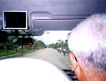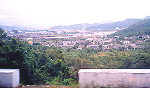 りきった私たちは、まず海南島西部の万寧方面に向かって高速道を走った。目的地は興隆という温泉地だ。 ・・高速道路といっても車の数は極端に少なく、広々としてまっすぐに伸びて い る。看板や道路灯もなく、あたりは田園地帯が延々と続く。時速百キロ近いスピードがやけに遅く感じる。 ・・驚いたことに、上下4車線のうち片側2車線が前ぶれもなく工事中であっ た り、近隣の農民が路上を占拠して脱穀作業をしていたりする。あるいは、水牛が寝そべっていたり、のんびりと食事している人たちもいる。だ から車はときおり 反対車線に入り込み、ハザードランプを点滅させて走らなければいけないのだ。そのうえ途中でパトカー2台にはさみうちされるように止めら れるというハプニ ングもあった。 ・・私たちの当初の計画としては、五指山や黎母嶺という山岳地域に行きた かった のだが、前夜これを平先生に話したら強く首を横に振られた。観光用の本では3時間程度で行けると踏んでいたのだが、平先生は「道が悪いの で到底無理だ」と いった。なるほど高速道路でさえなにかトラブルが起きそうな気配がするのに、山岳地帯ではなおさらであろう。平先生に「写真は制限されて いないか」と聞く と、それでも「問題ない」という。 ・・3時間も走って高速道を万寧の手前で下り、興隆の町に入った。ここまで 来る と三亜のような華やかさはないが、にぎやかである。レンガ造りの商店が並び、ときおりカラフルな温泉ホテルのような施設も見え隠れする。 三輪や自転車にサ イドカーをつけたタクシーが多く、バイクや自転車に若者が二人乗りや三人乗りで走る姿が目立つ。そしてこの町でも警察の検問を受けた。そ うこうするうちに 街を通り過ぎて山間部に向かうとそこに中国熱帯農業科学院熱帯香料飲料作物研究所があった。 |