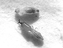 ![]() ノコバシロアリの塚状巣 ![]() ノコバシロアリの巣を分解する ![]() ノコバシロアリの 働きシロアリ(上)と兵隊シロアリ(下) |