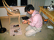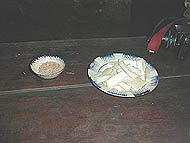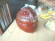 | この中には陶器の急須が入ってる | ドリアンを切ってもらった | 柿原さんはドリアンどころでなさそう |