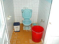 | 水洗だが水は柄杓で流す | ポリタンクで焼酎を売っている | シロアリの仕分けは毎日夜まで続く |