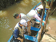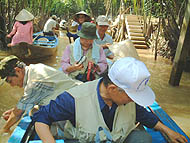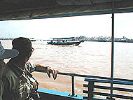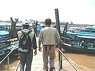 | メコンクルーズの船着場 | 観光用の船にて | 同じような船がたくさん走る |
