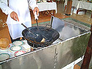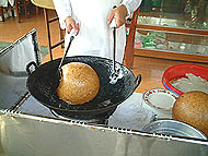 | 観光客でクリークはにぎやか | ライスボールの作り方 | 10分ぐらい転がすとこうなる |
