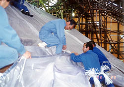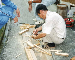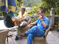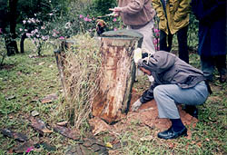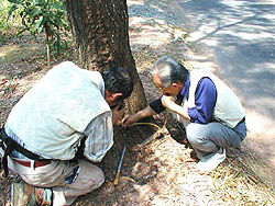 ![]() 燻蒸シートを設置する山根さんら (伊勢・金剛證寺) ![]() 天井裏から降りてきた山根さん (和歌山県古座川町) ![]() 被害材を分解してシロアリを取り出す (和歌山県古座川町) ![]() 樹木シロアリ採取のため木に登った (高知県沖ノ島) ![]() オオキノコシロアリを採取する (中国・華南植物園) ![]() 星野さん(左)とは兄弟のような関係で 雑談の種が尽きない (台湾・民俗博物館) ![]() 近年は仕事でも採取でも 柿原さん(右)と行動を共にすることが多かった (ベトナム) ![]() 訪中時の私と山根さん (中国白蟻対策センター前) |