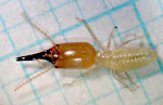 兵隊シロアリの大顎は長く左右不対象にややねじれ、刺激を受けるとこれをはじきます。