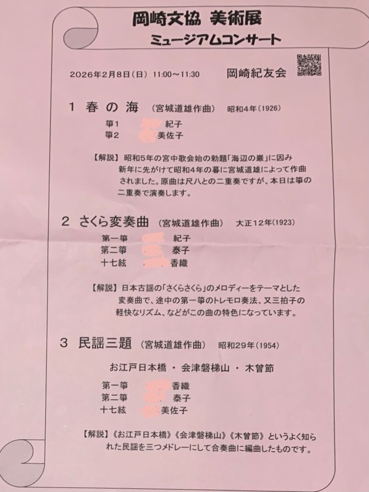 2月8日(日)11時より開催された「岡崎文協美術展」のミュージアムコンサートに出演😊